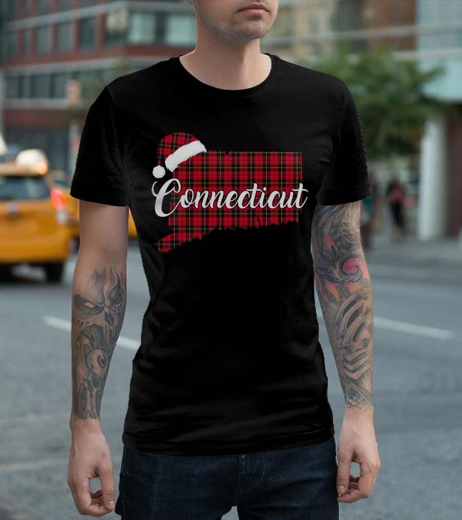 Connecticut Red Buffalo Plaid With Santa Hat Royal Stewart T-Shirt