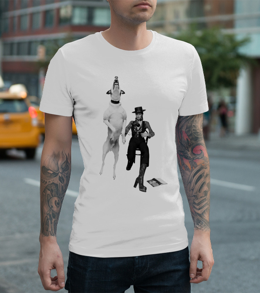 High Jumping Dog And Stylish Figure In Western Attire T-Shirt