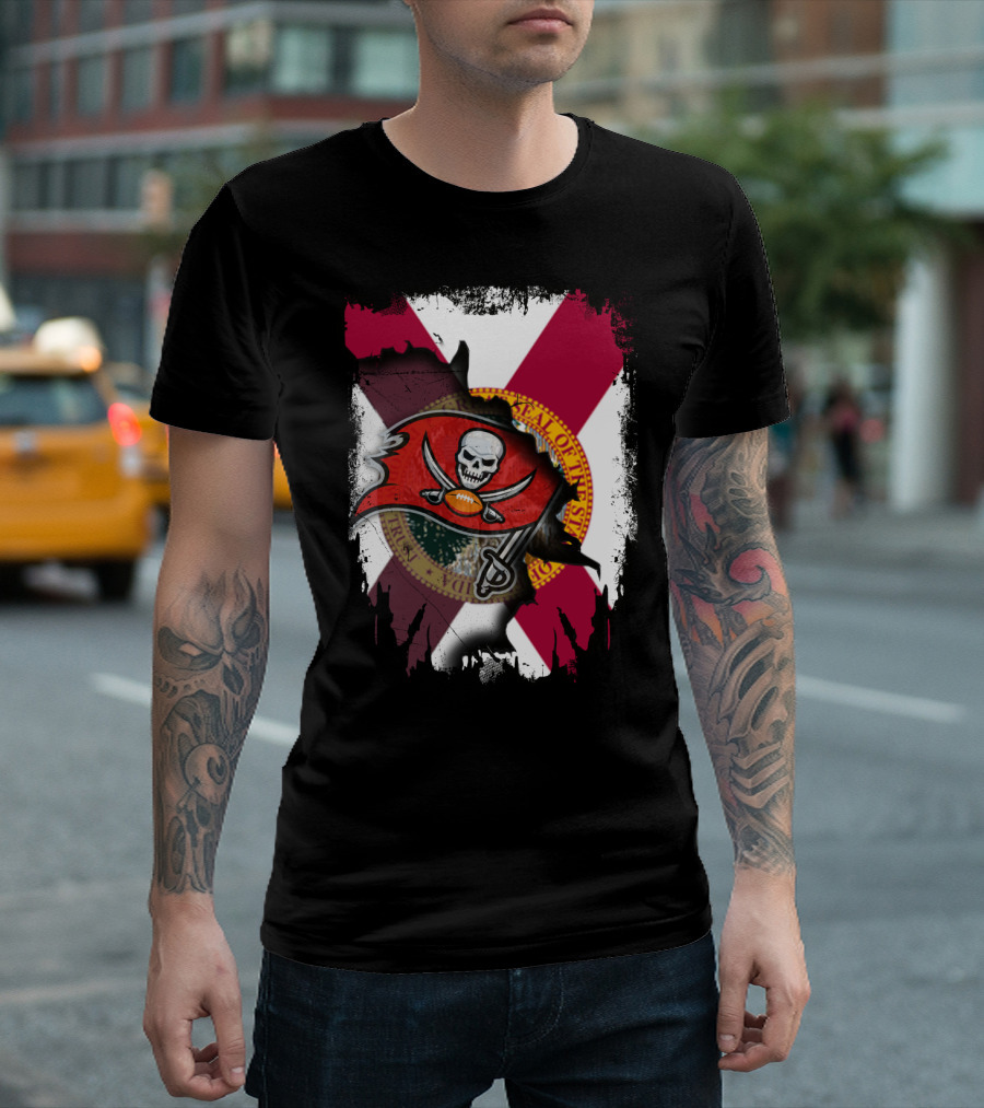 Florida State Flag With Tampa Bay Buccaneers Logo Fusion T-Shirt