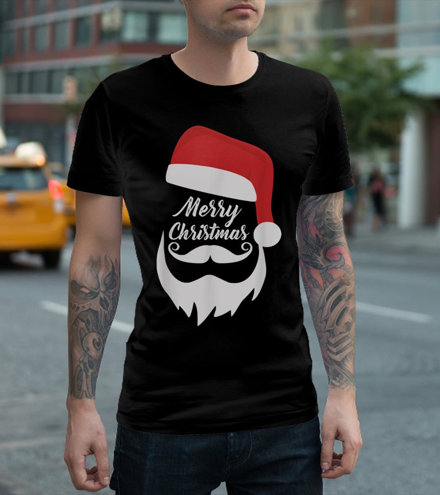 Merry Christmas Bearded Santa With Red Hat T-Shirt