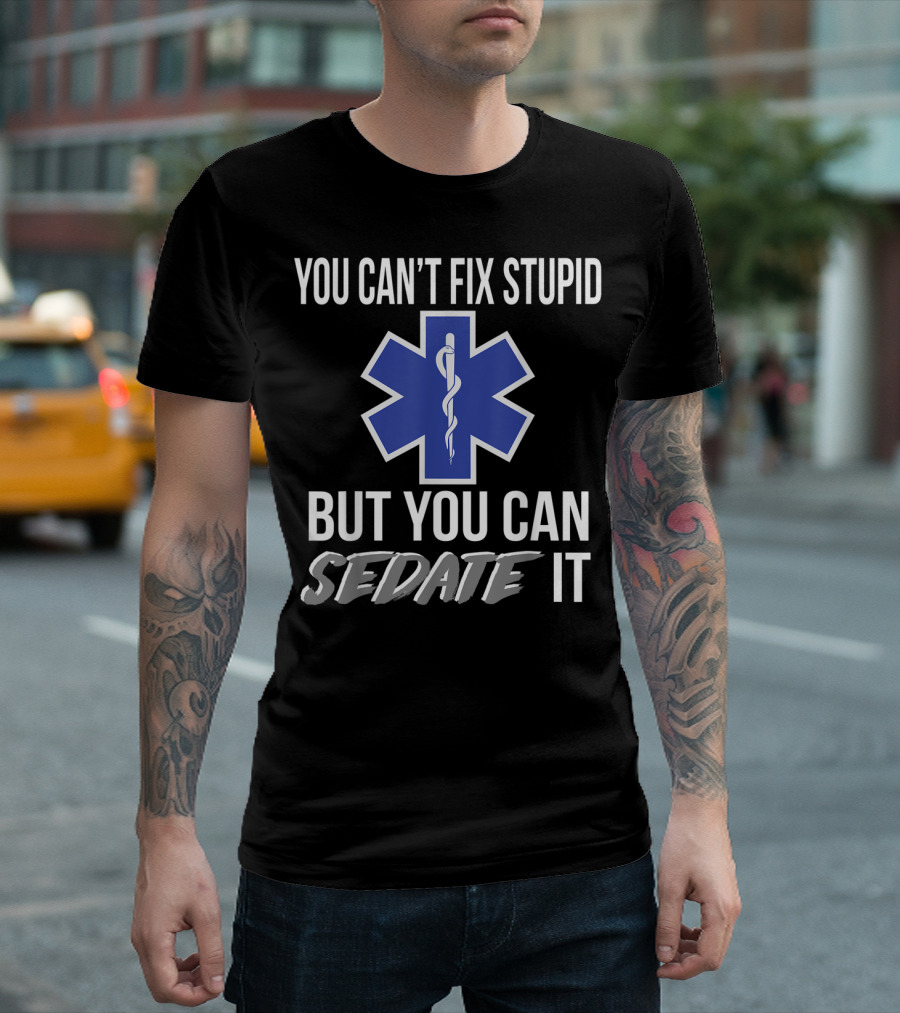 You Can't Fix Stupid But You Can Sedate It EMS Star Of Life T-Shirt