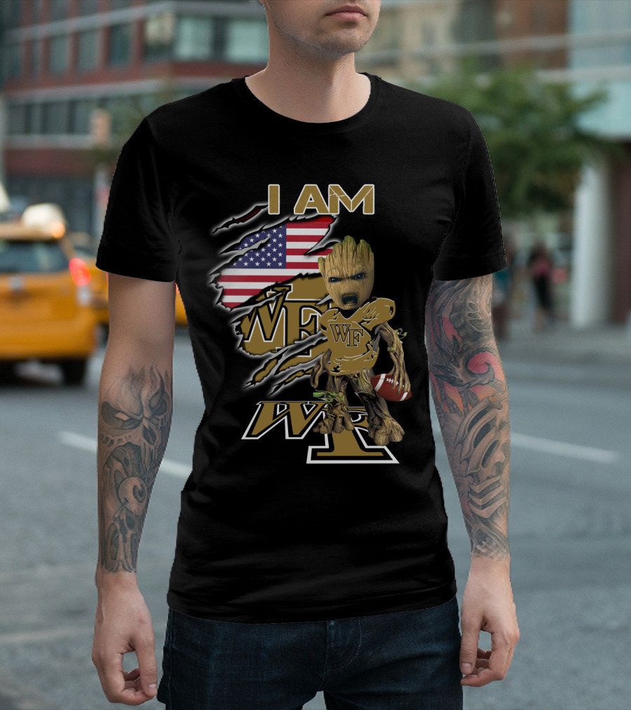 I Am Wf Wake Forest Baby Groot American Flag Football T-Shirt