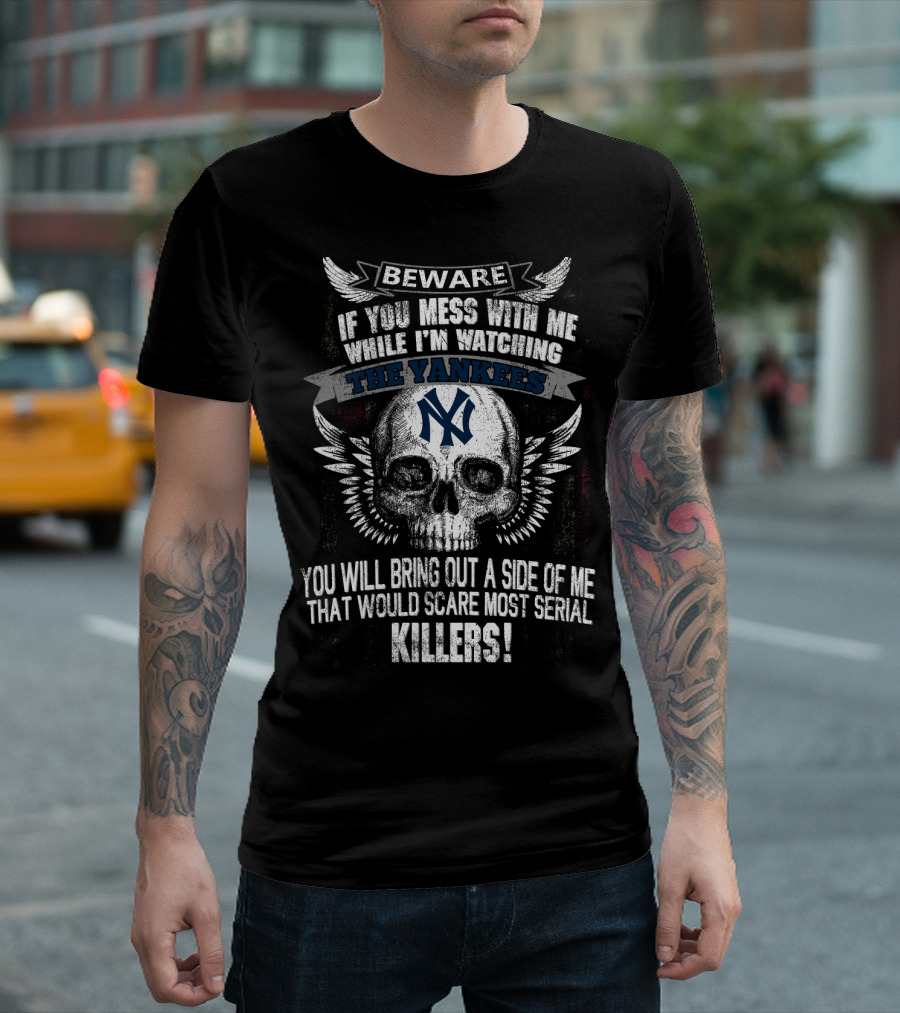 Beware If You Mess With Me While I'm Watching The Yankees Ny You Will Bring Out A Side Of Me That Would Scare Most Serial Killers T-Shirt