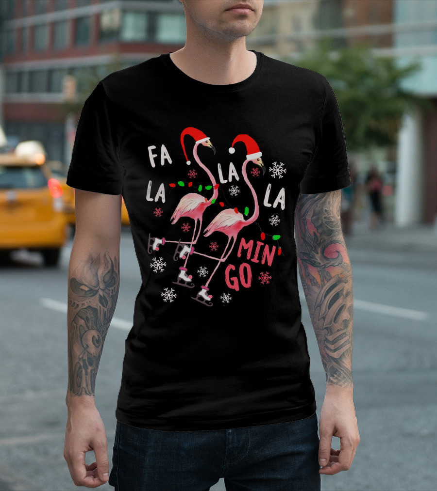 Fa La La La Mingo Christmas Flamingo Santa Hats And Ice Skates T-Shirt