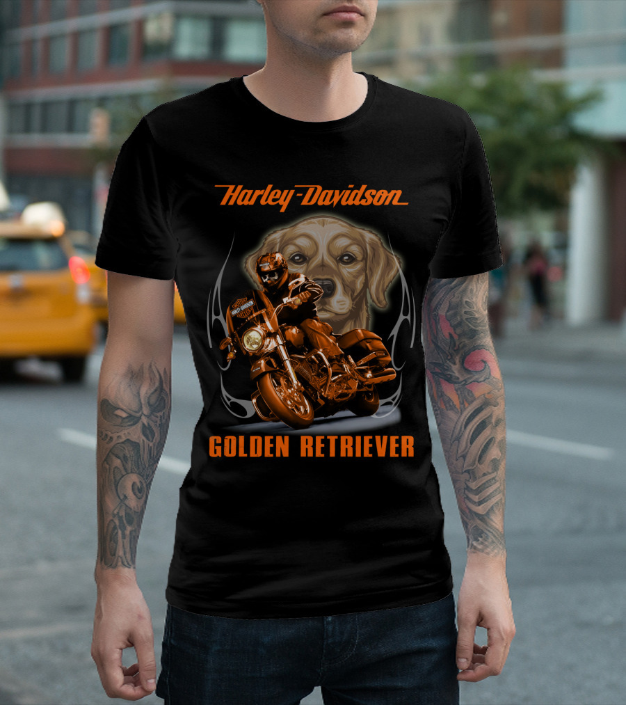 Harley Davidson Golden Retriever Motorcycle Rider T-Shirt