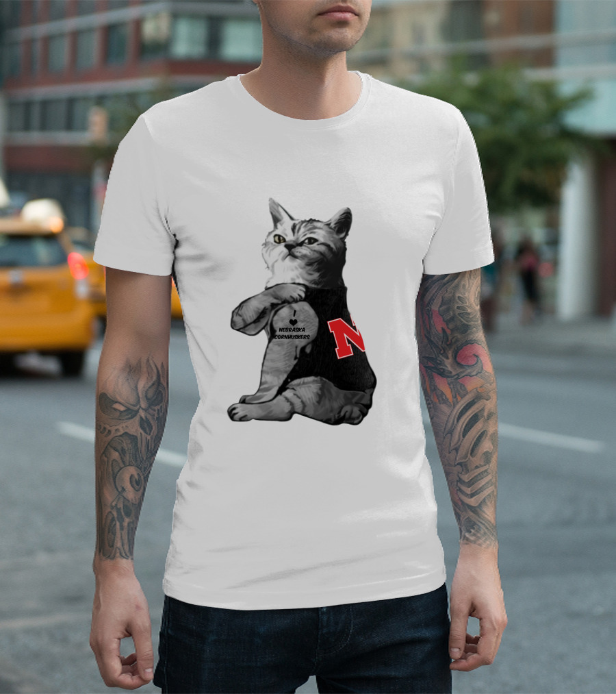 Nebraska Cornhuskers Cat Wearing Black Jersey With Red N T-Shirt