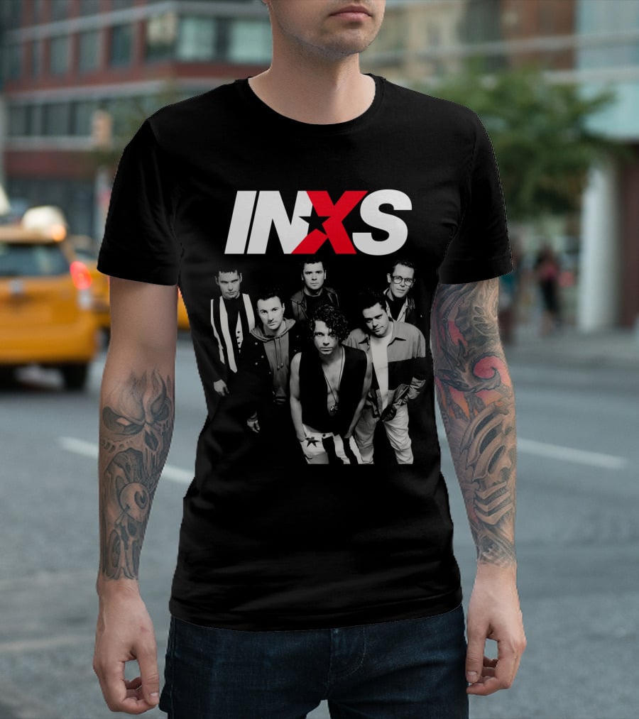 Inxs Band Black And White Group Photo With Red T-Shirt