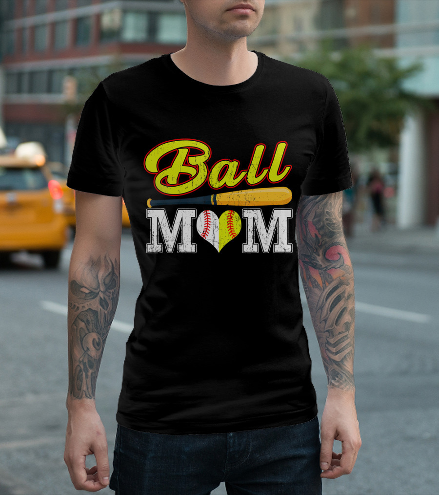 Ball Mom Softball Baseball Heart Bat T-Shirt