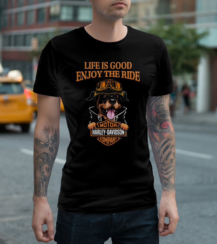 Life Is Good Enjoy The Ride Harley Davidson Rottweiler Motor Company T-Shirt