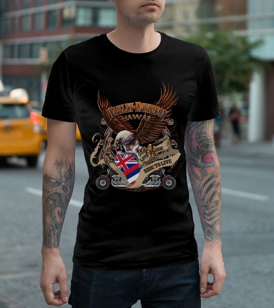 Harley Davidson Hawaii Live To Ride Ride To Live Eagle And Motorcycle T-Shirt