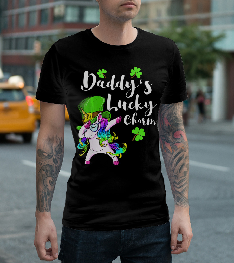 Daddy's Lucky Charm St. Patrick's Day Unicorn With Shamrock Hat T-Shirt