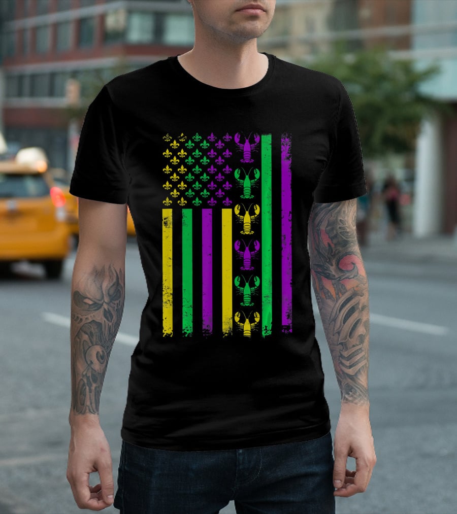 American Flag Mardi Gras Crawfish Fleur-de-Lis T-Shirt