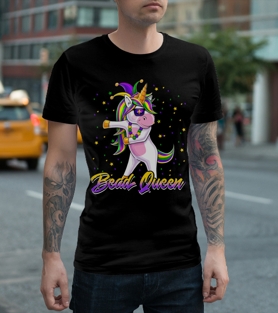 Bead Queen Mardi Gras Unicorn With Floss Dance And Jester Hat T-Shirt