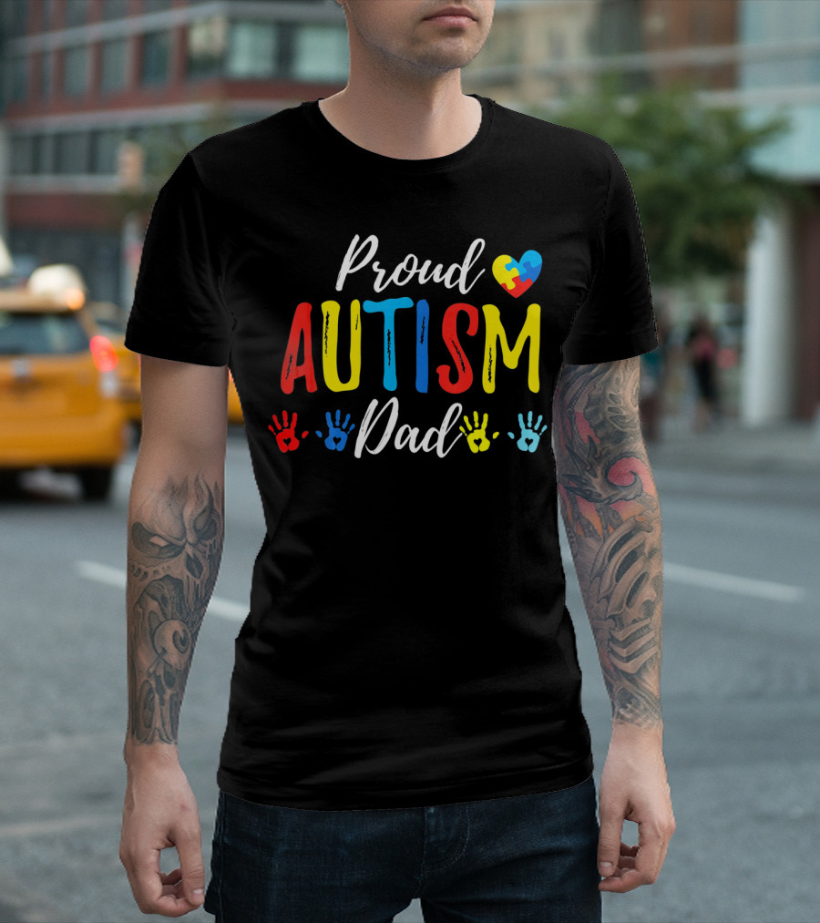 Proud Dad Autism Awareness Heart And Handprints T-Shirt