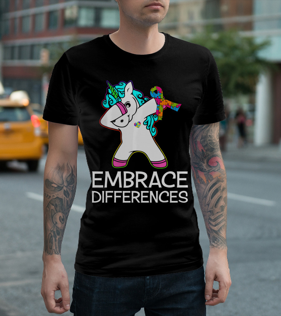 Embrace Differences Unicorn Autism Awareness Puzzle T-Shirt