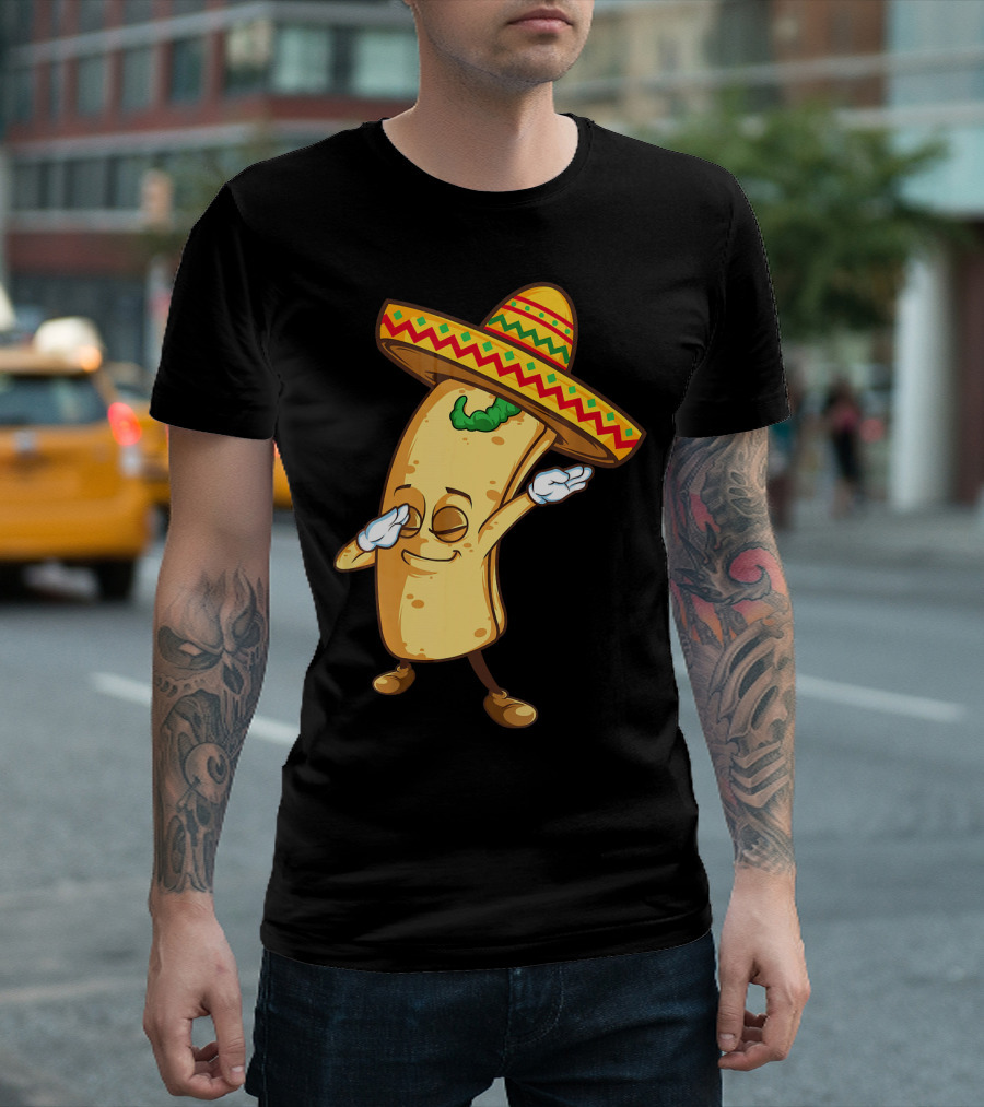 Funny Dabbing Burrito Mexican Cinco De Mayo Sombrero Cartoon T-Shirt