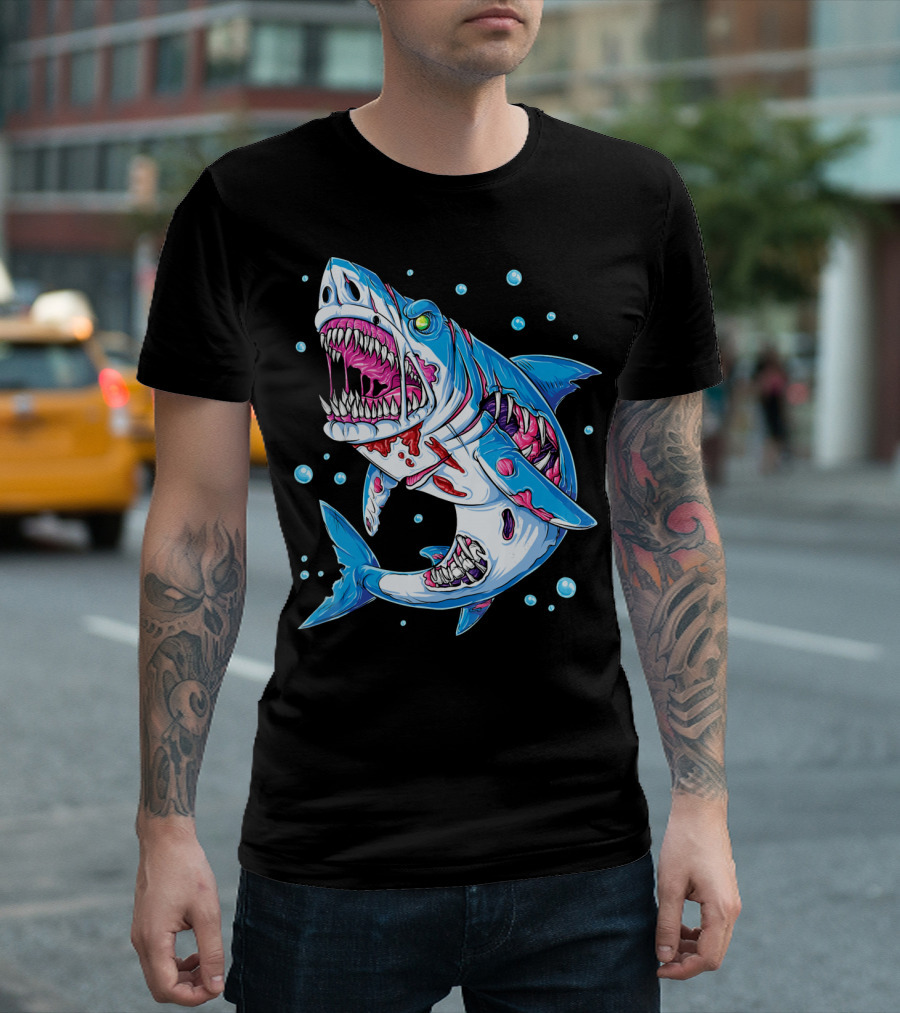 Shark Zombie Underwater Monster With Exposed Bones And Teeth T-Shirt