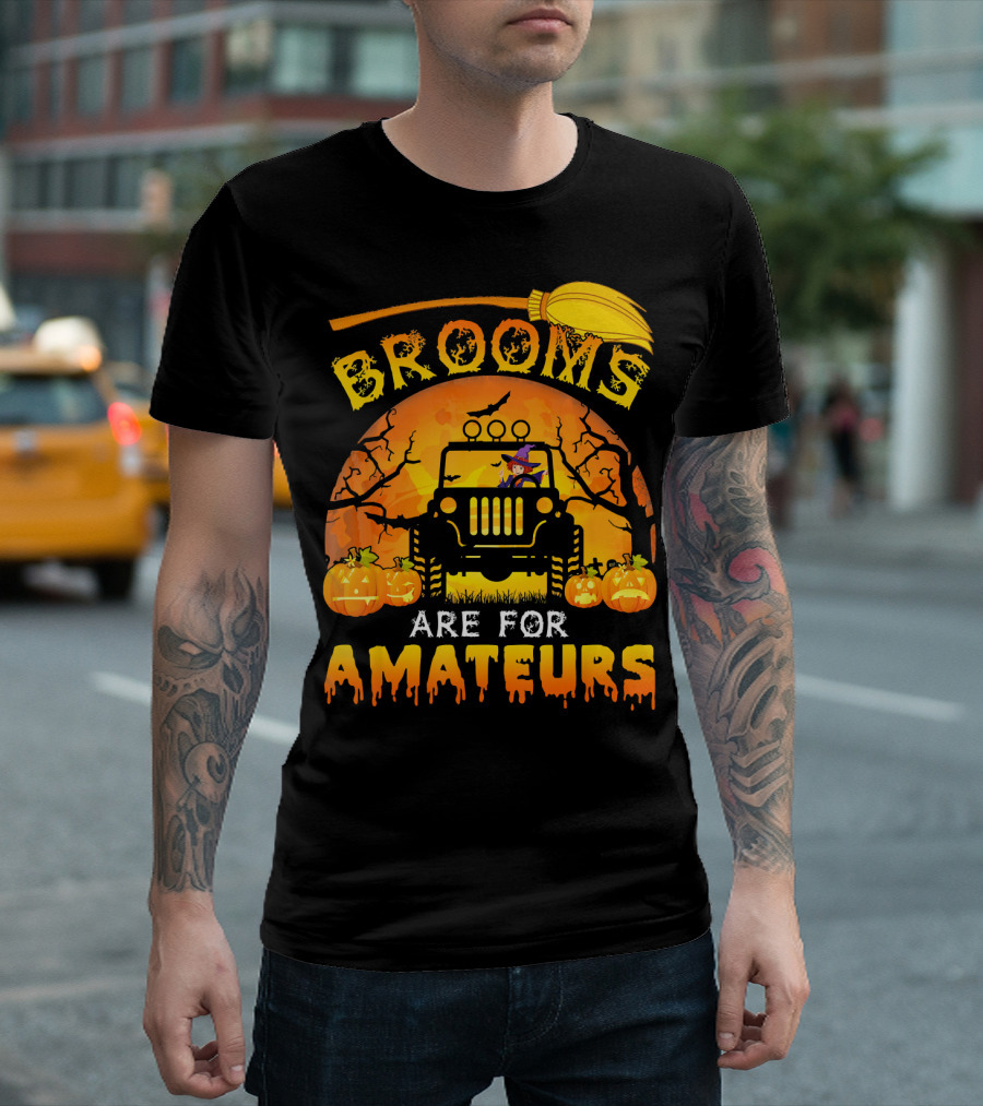 Halloween Brooms Are For Amateurs Jeep Witch Pumpkins Full Moon T-Shirt