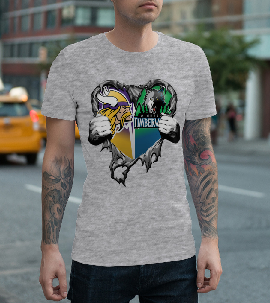 Minnesota Vikings Minnesota Timberwolves Heart Logo Mashup T-Shirt