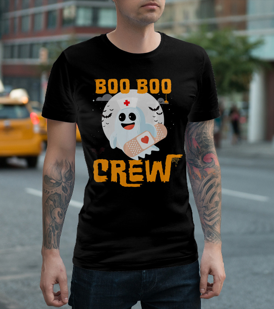 Boo Boo Crew Nurse Ghost Halloween Bandage Spooky Bat Moon Costume T-Shirt