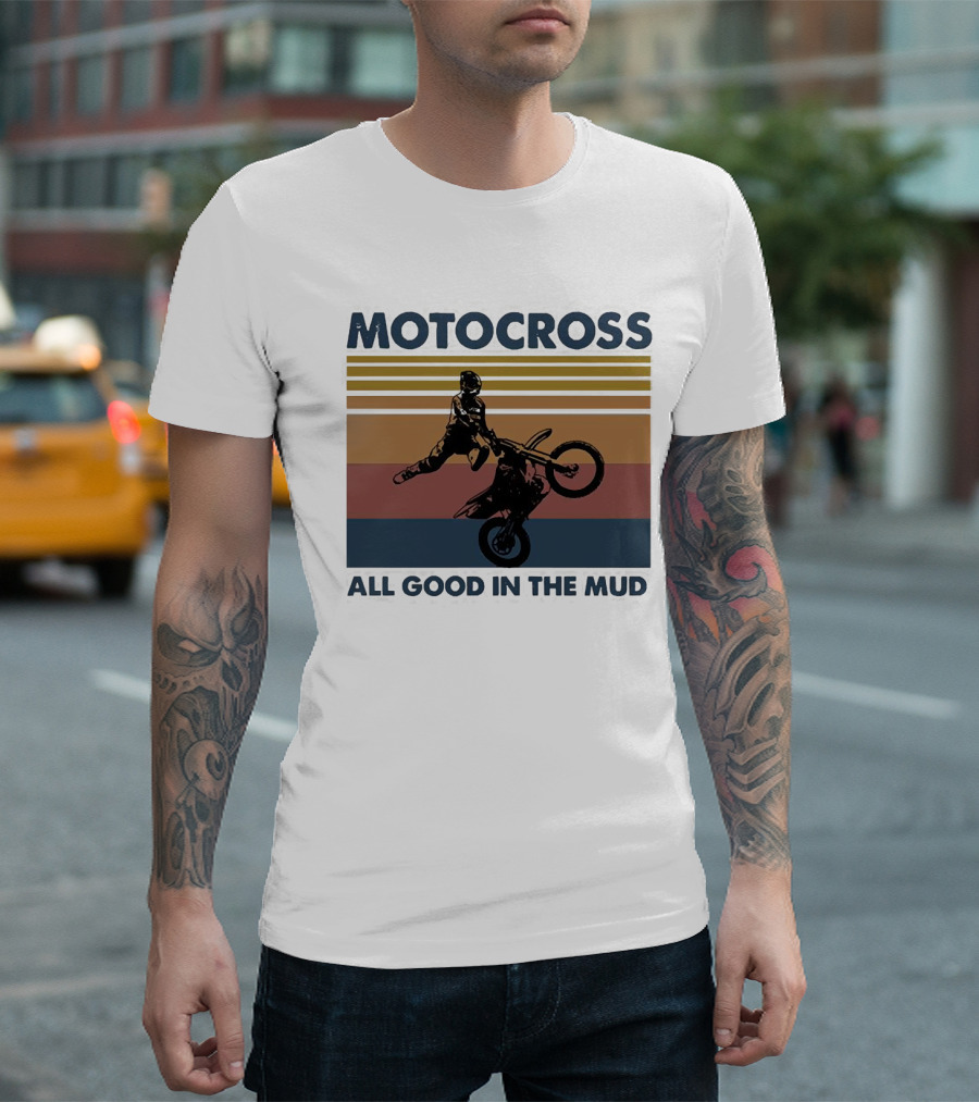 Motocross All Good In The Mud Retro Rider Stripes T-Shirt