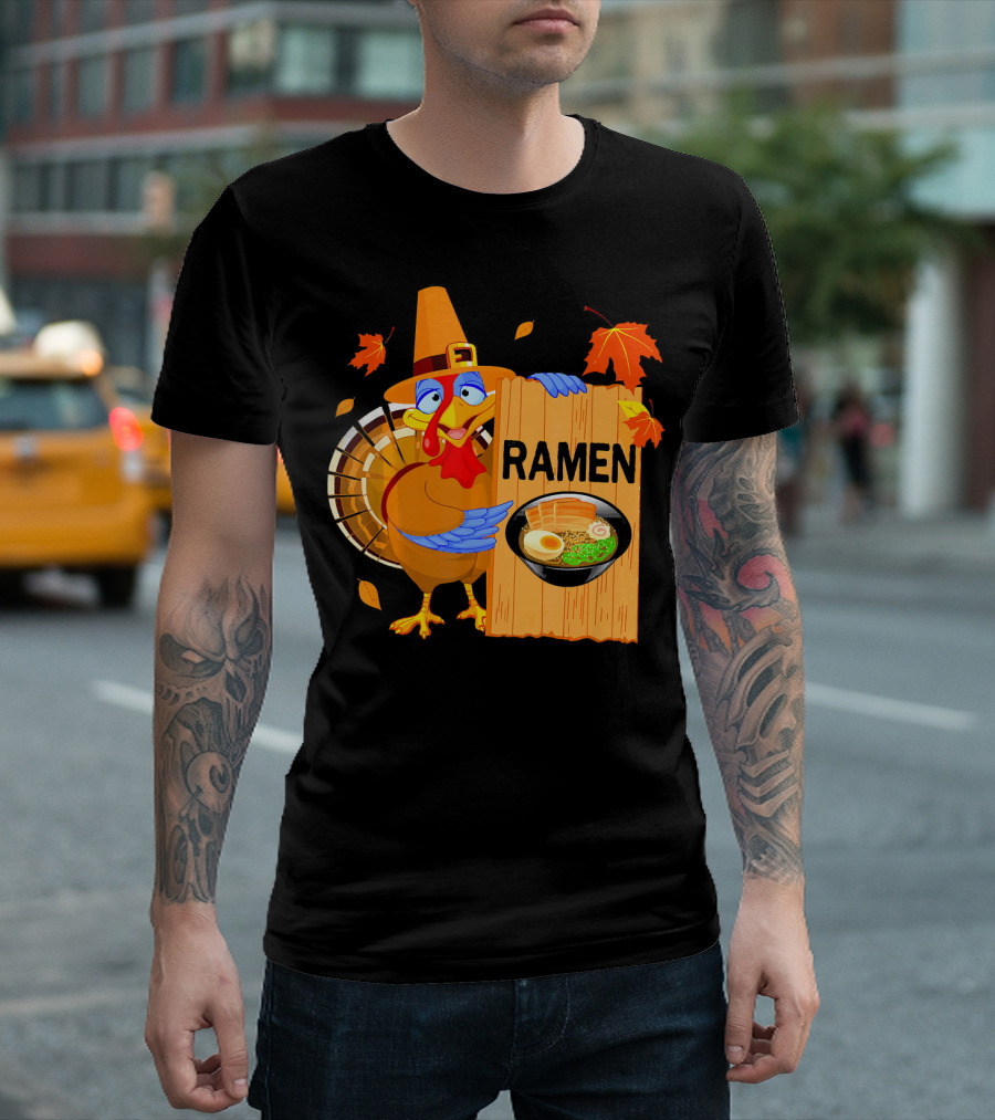 Thanksgiving Turkey With Ramen Bowl And Leaves T-Shirt