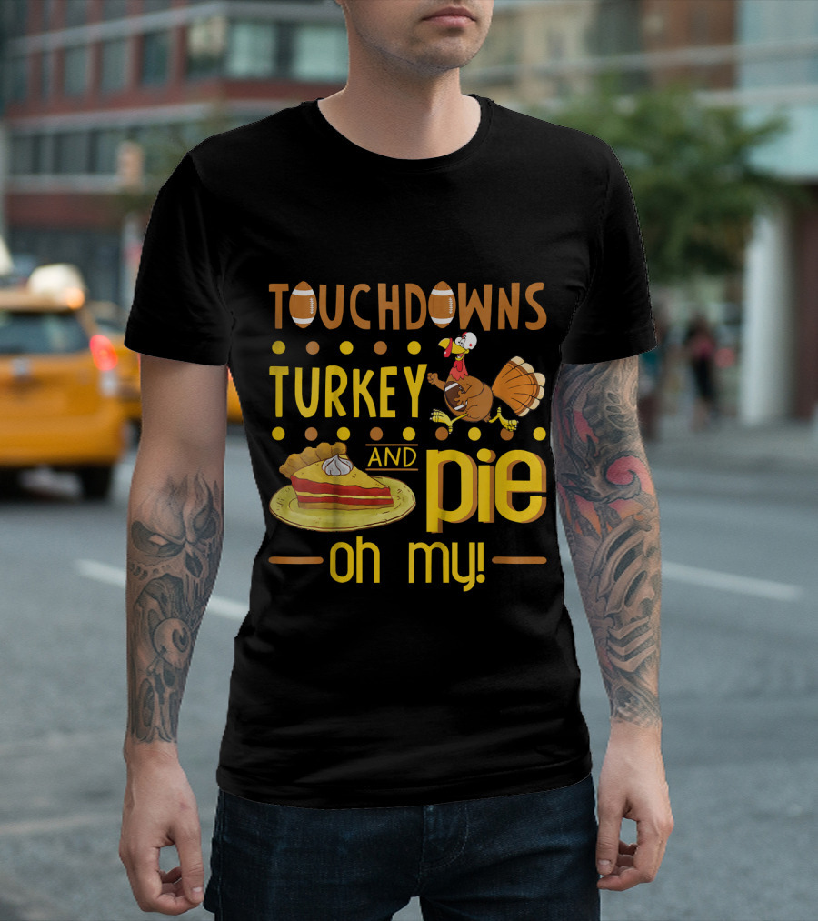 Touchdowns Turkey And Pie Oh My Thanksgiving Kids Football T-Shirt