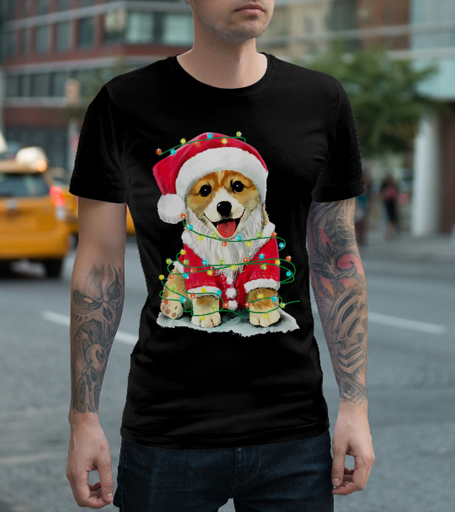 Festive Christmas Corgi Santa With Holiday Lights Corgmas San T-Shirt