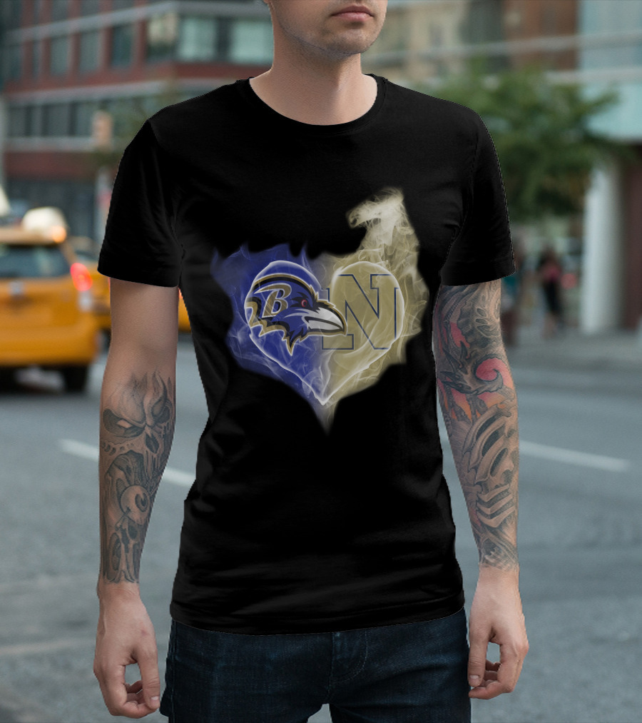Baltimore Ravens Navy Midshipmen Heart Fusion T-Shirt