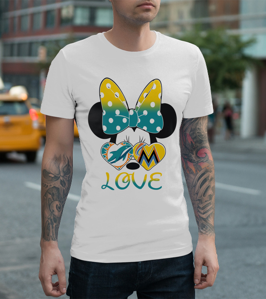 Minnie Bow Dolphins Marlins Love T-Shirt