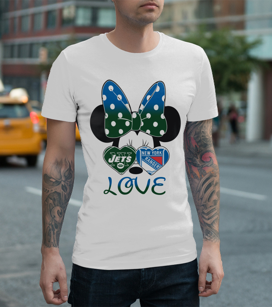 New York Jets Rangers Love Minnie Bow T-Shirt