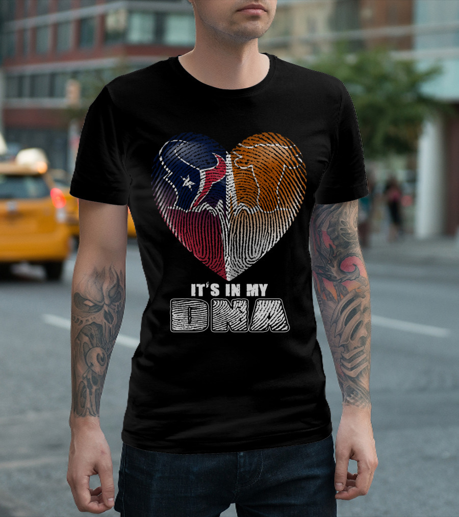 It's In My Dna Texans And Longhorns Heart Fingerprint T-Shirt