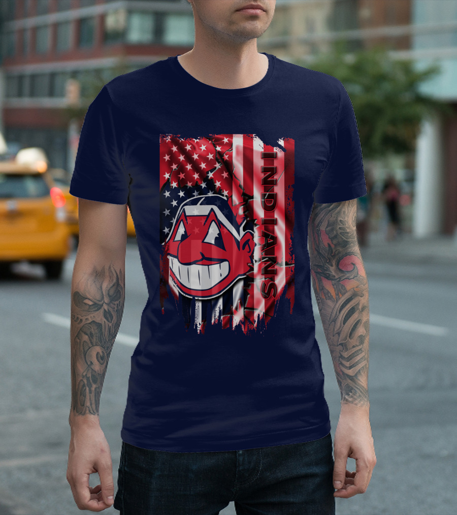 Cleveland Indians Chief Wahoo American Flag Patriotic Baseball T-Shirt